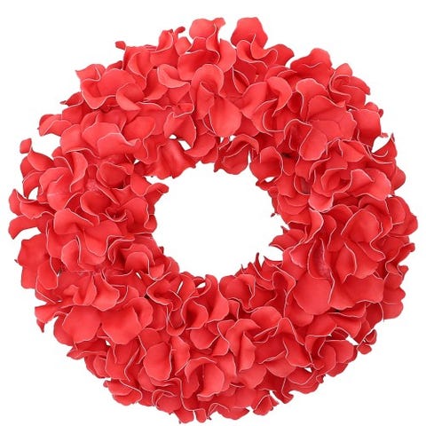 Artificial crimson wreath of "frothy" hydrangea blossoms!