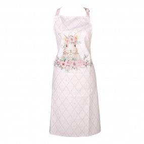 Schöner, rosa, dekorativer Küchenschürze mit einem Hasenmotiv. Hergestellt aus 100% Baumwolle.