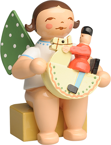 Figurine d'ange Wendt & Kühn originale, petite, avec petit cavalier.