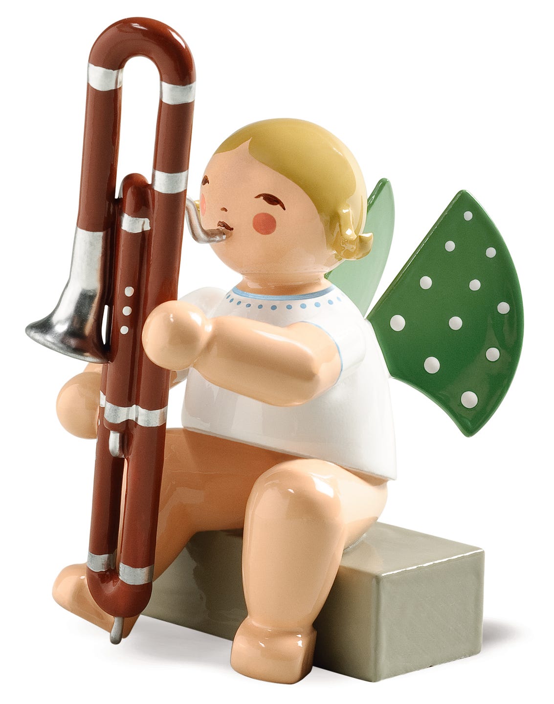 Figurine originale Wendt & Kühn ange avec contrebasson, assis.