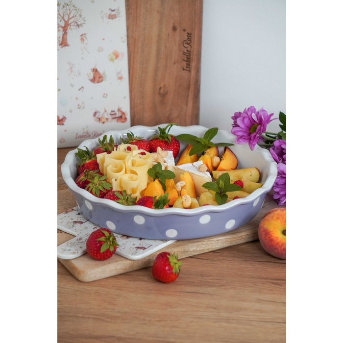 Die fliederfarbene Tortenform mit Punkten ist in der Küche sehr nützlich für alle Arten von fruchtigen Torten. Kann in der Spülmaschine, im Backofen und in der Mikrowelle verwendet werden.