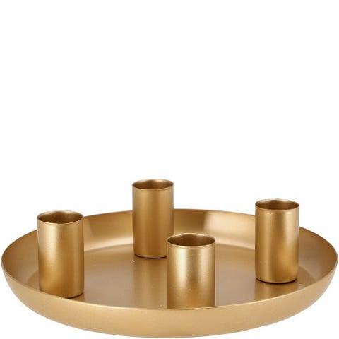 Beau et pratique bougeoir en métal doré, mat. Idéal pour 4 bougies bâtons. La plaque peut toujours être redécorée.