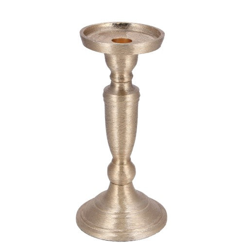Bougeoir en métal "Mabel", D9cm, H23cm, or brossé; pour bougie conique/pilier.