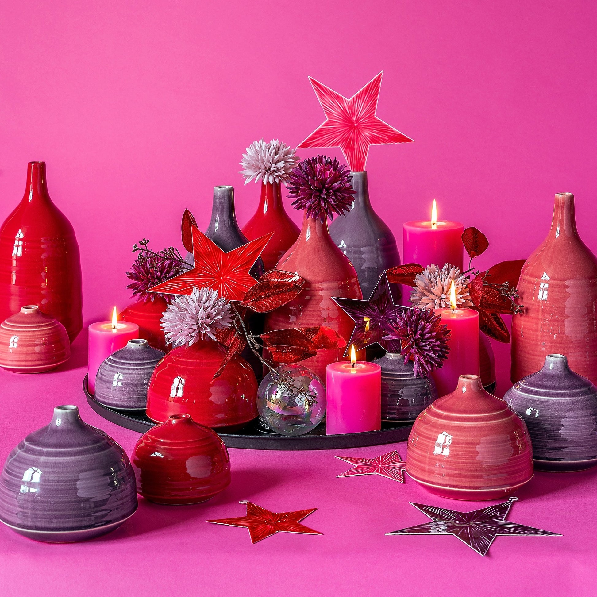 Metall Stern "Asia" zum Hängen, 3 Farben, D11cm, rot/lila/pink