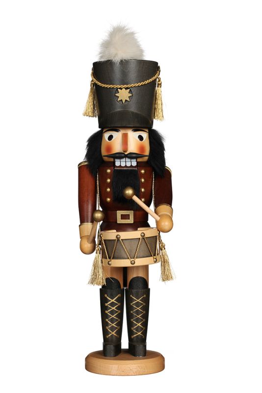 Der prächtige Trommler präsentiert sich in einer schicken Uniform mit Gold verziert. Mit seiner Trommel gibt er beim Marschieren den Rhythmus an.