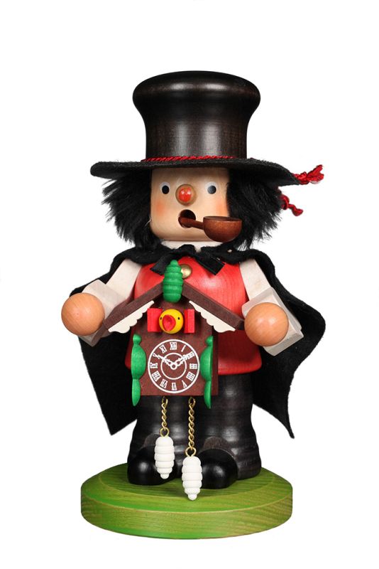 Sein Festgewand hat der Schwarzwälder an. Voller Stolz präsentiert der Rauchmann das Wahrzeichen seiner Heimat, eine kleine Kuckucksuhr. Genussvoll raucht er sein Pfeifchen.