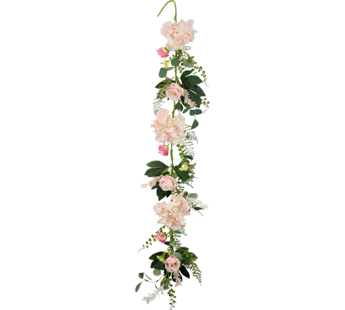 Aufwendiges Design: Die Girlande überzeugt mit viel Liebe zum Detail. An der langen Girlande sind in regelmäßigen Abständen rosafarbene und pinke Pfingstrosen angebracht, die in unterschiedlichem Blattgrün eingebettet sind. Dank eines oben integrierten Hakens kann die Girlande problemlos aufgehängt werden.