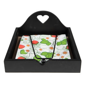 Porte-serviettes en noir, bois/métal, avec cintre. 21x21x11cm