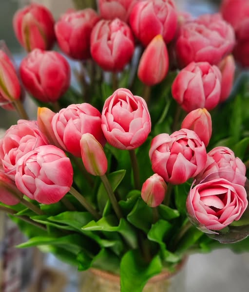 Tulpenbund "Camilla", 3 Blüten, 2 Knospen, L40cm, pink