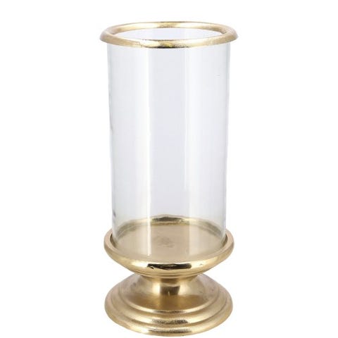Lanterne en métal "Lamia", D18cm, H38cm, socle en métal avec dessus en verre, doré.