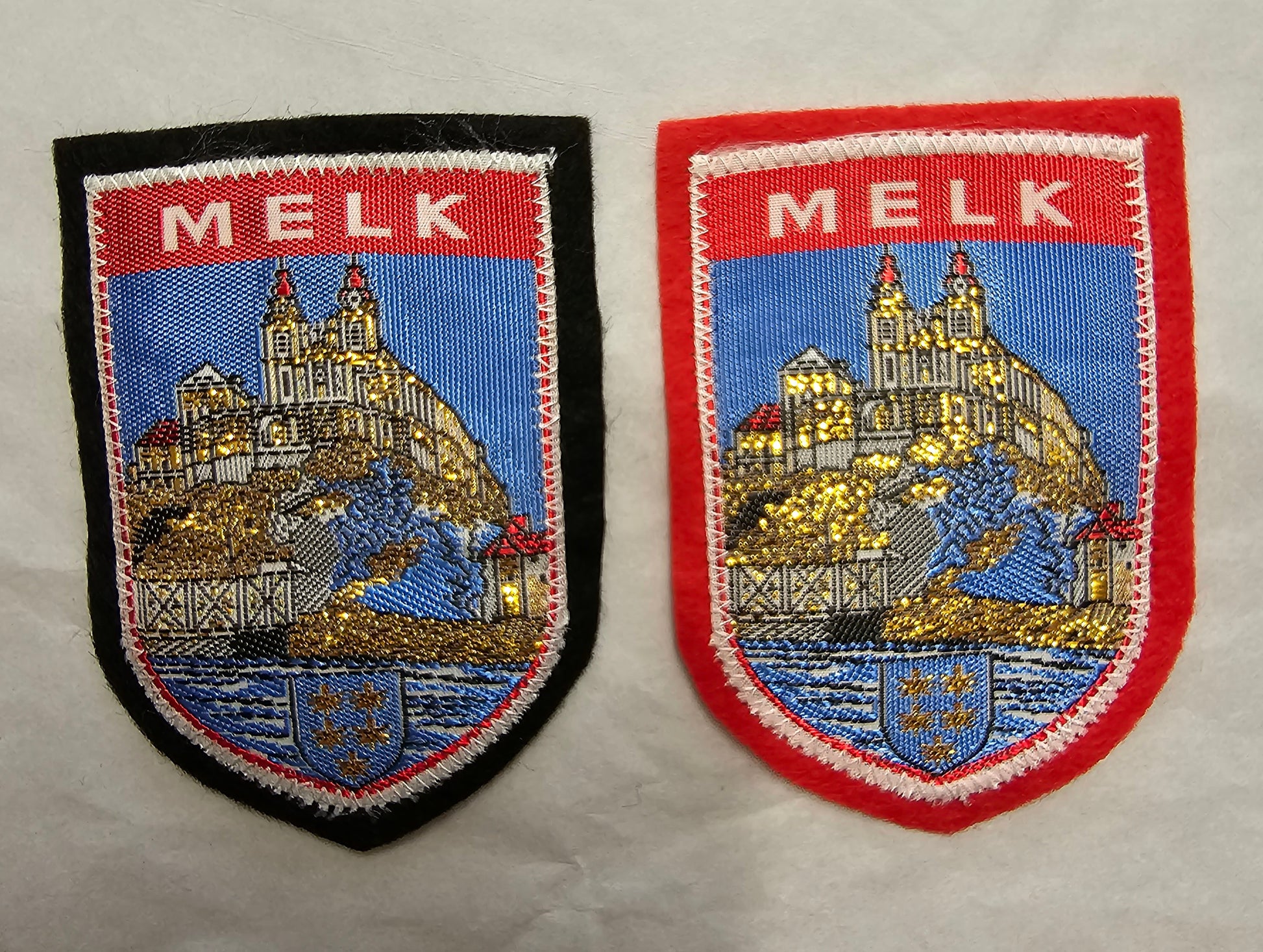 Aufnäher, Ärmelwappen, Patch aus Textil. 8 cm hoch. Mit roter oder schwarzer Umrandung.