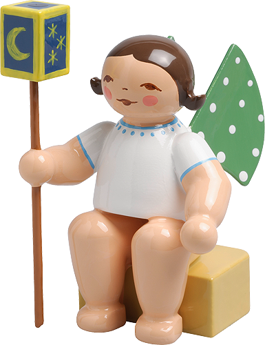 Original Wendt & Kühn Figur Engel, klein, mit Stablaterne. Höhe 4,5 cm