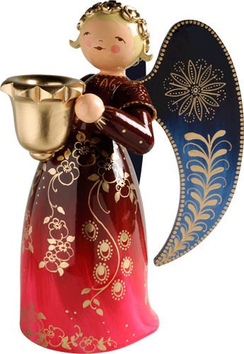 Engel reich bemalt, groß, mit Lichtnapf, rot